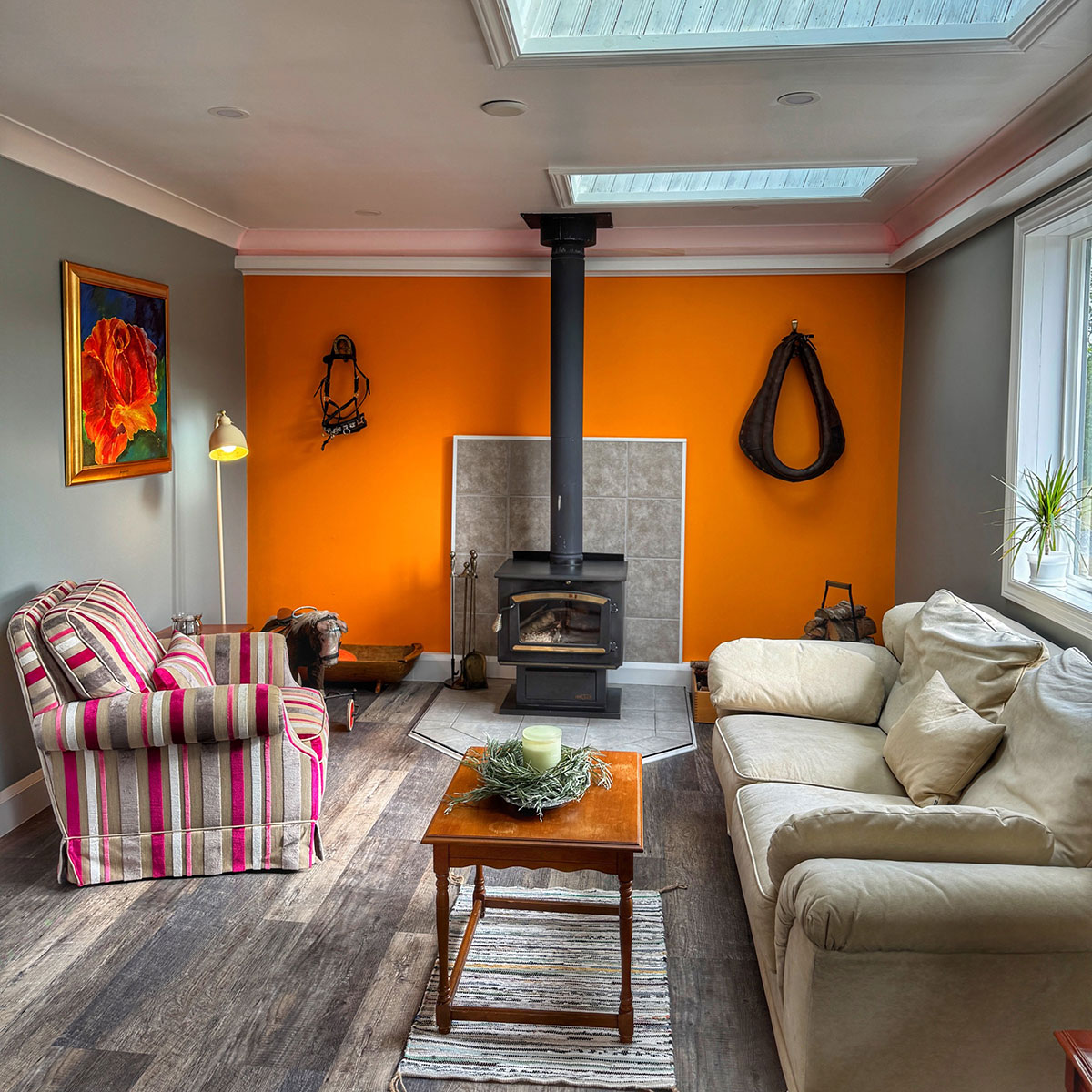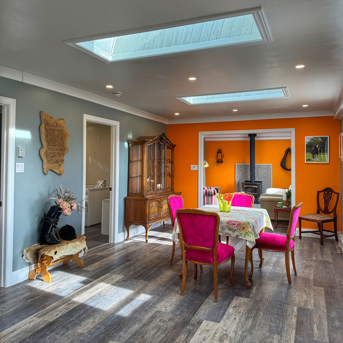 A place where every detail tells a story. Named after the beloved Clydesdale horses that roam our pastures, the cottage carries their spirit of calm strength and timeless grace. Inside, you’ll find furnishings that have been in our family for generations, pieces lovingly cared for and now part of the story we share with our guests. The décor reflects the charm of the horses, elegant, grounded, and full of character with detail to curated treasures chosen with heart.